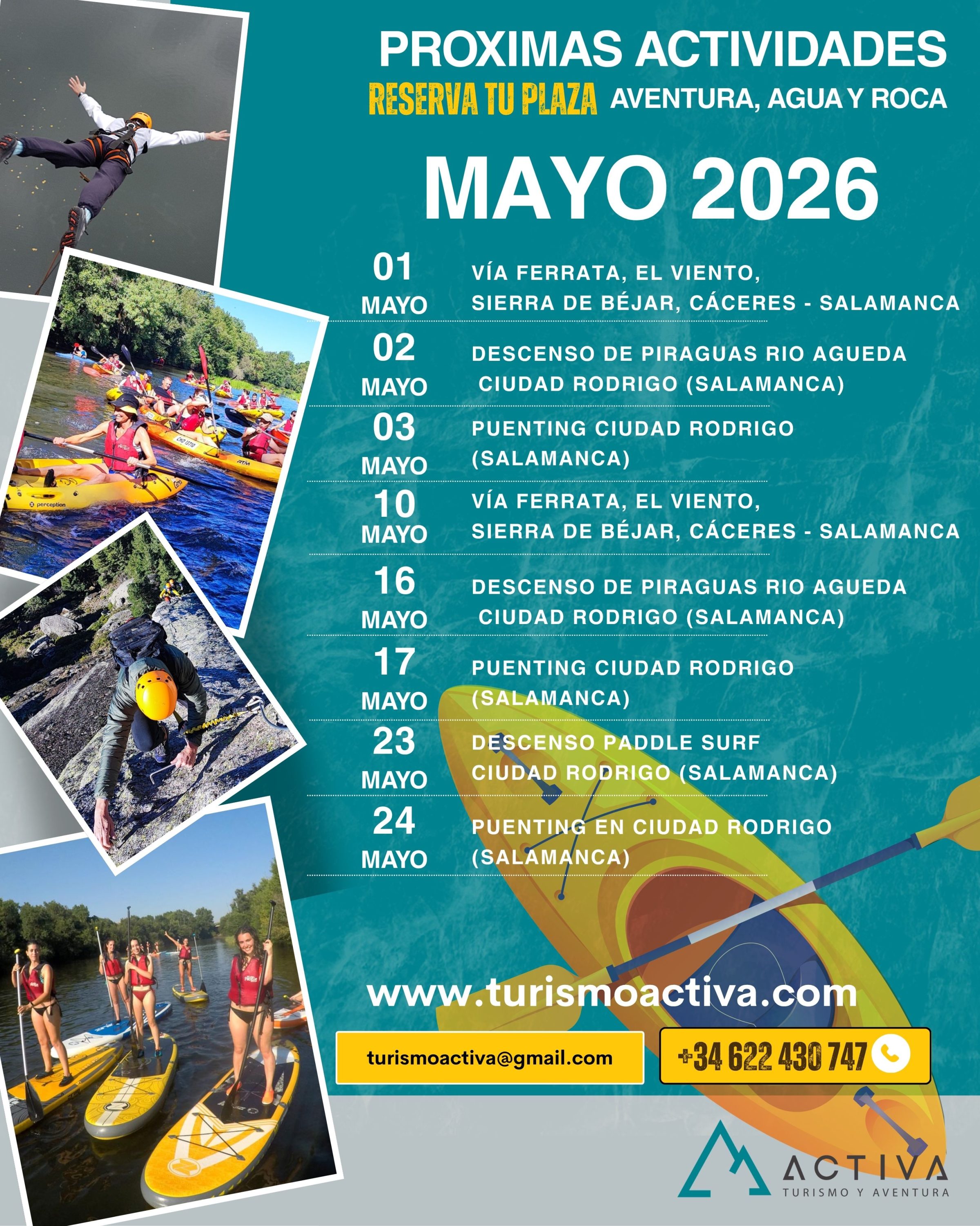 Próximas actividades mayo 2026 Próximos eventos en Mayo Turismo ActivaEl buen tiempo ya está aquí… y con él, la mejor época para disfrutar del río, la aventura y la adrenalina.En […]
